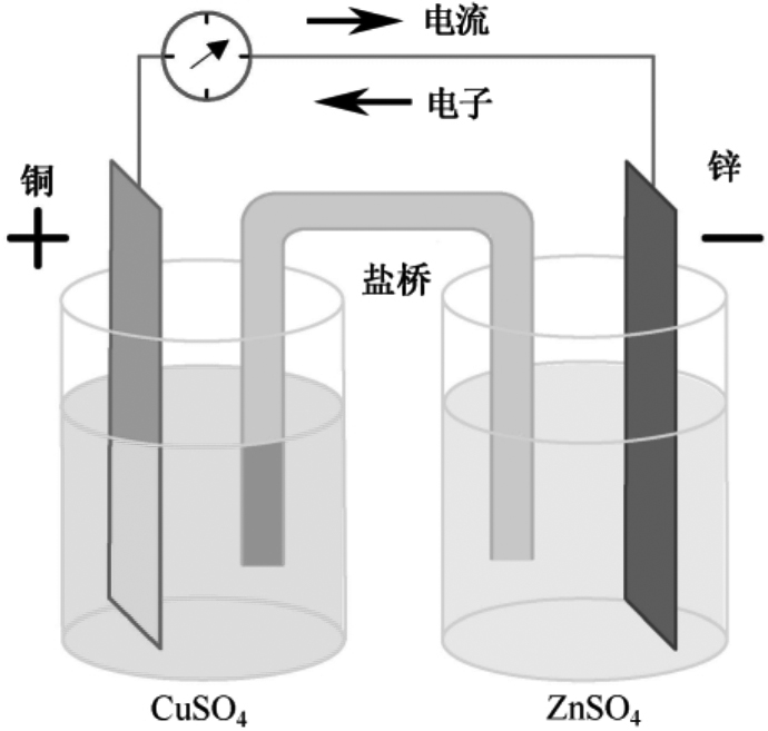 将Zn(锌)置于ZnSO 4 (硫酸锌)溶液中,将Cu(铜)置于CuSO 4 (硫酸铜)溶液中,并用盐桥或离子膜将两种电解液连接起来,就构成了丹尼尔电池。