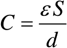 式中, C 为超级电容器的容量,单位为F; U 为电压,单位为V。超级电容器的单体电压由电解质的分解电压决定,典型的单体电压为1~3V。为获得更高电压,必须将多个单体串联。根据平板电容器的基本原理,容量与极板面积 S 成正比,与绝缘体厚度 d 成反比,即