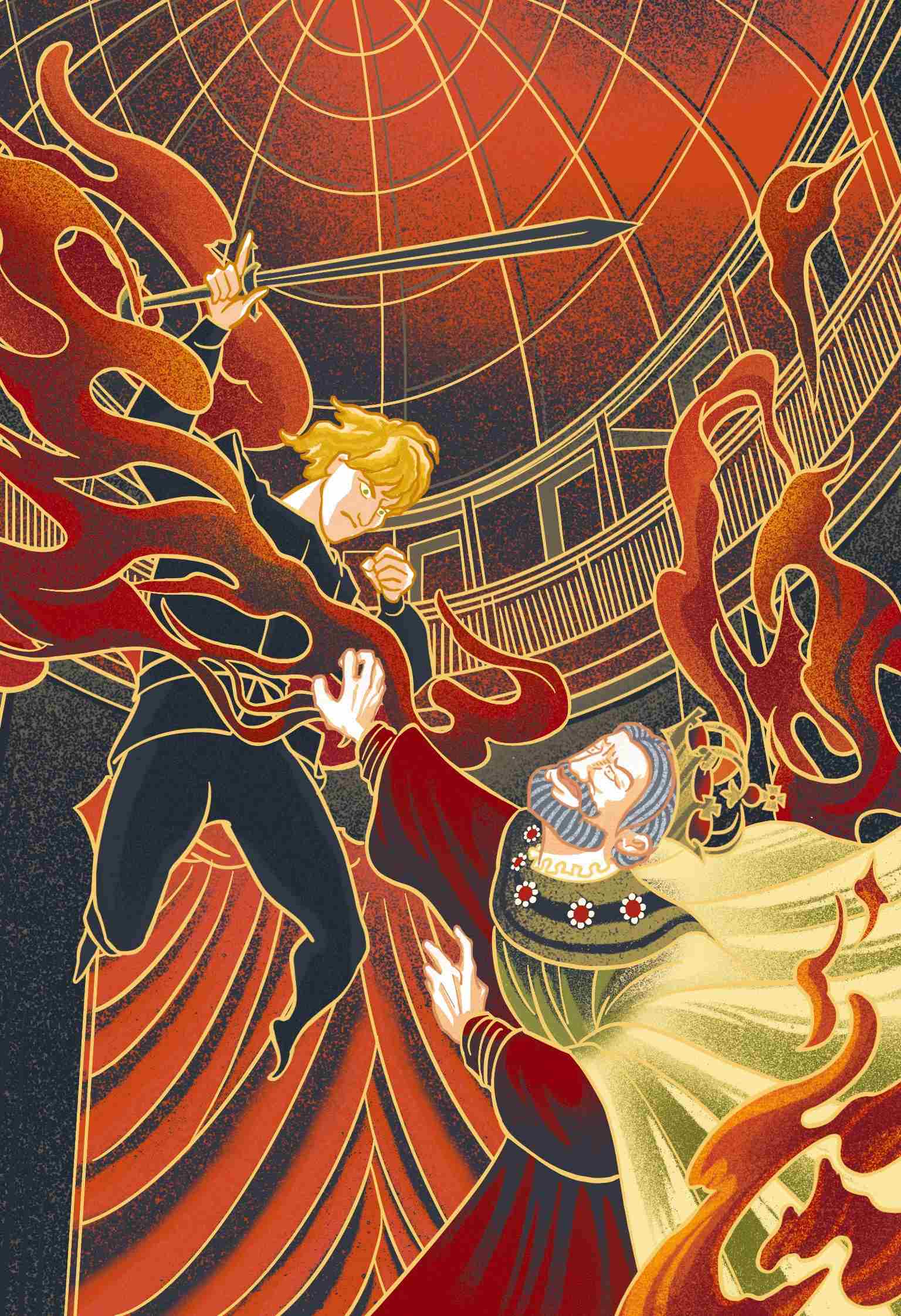 “一件残忍的事,母亲,”哈姆雷特回答,“几乎和谋杀国君,再改嫁其兄弟同样的邪恶!”哈姆雷特此刻已经在复仇的路上走得太远了,他索性将藏在心里的一切,一股脑儿地向王后说了出来。他谴责母亲是如此寡情薄幸,将对老国王的忠诚这么快就丢弃于一旁,反而对他那个无耻卑鄙的弟弟唯命是从。他举起自己父亲和叔叔的两幅肖像,请母亲睁眼看看到底哪一个才是值得她尊敬和爱戴的人。他看到王后羞愧得不敢抬起眼睛来,又继续追问她是否会继续和一个杀人犯生活在一起,还要让王冠戴在一个贼子的头上——就在他越说越激动的时候,忽然间又看到父亲的魂灵,栩栩如生地出现在这个房间里,就站在他的面前。