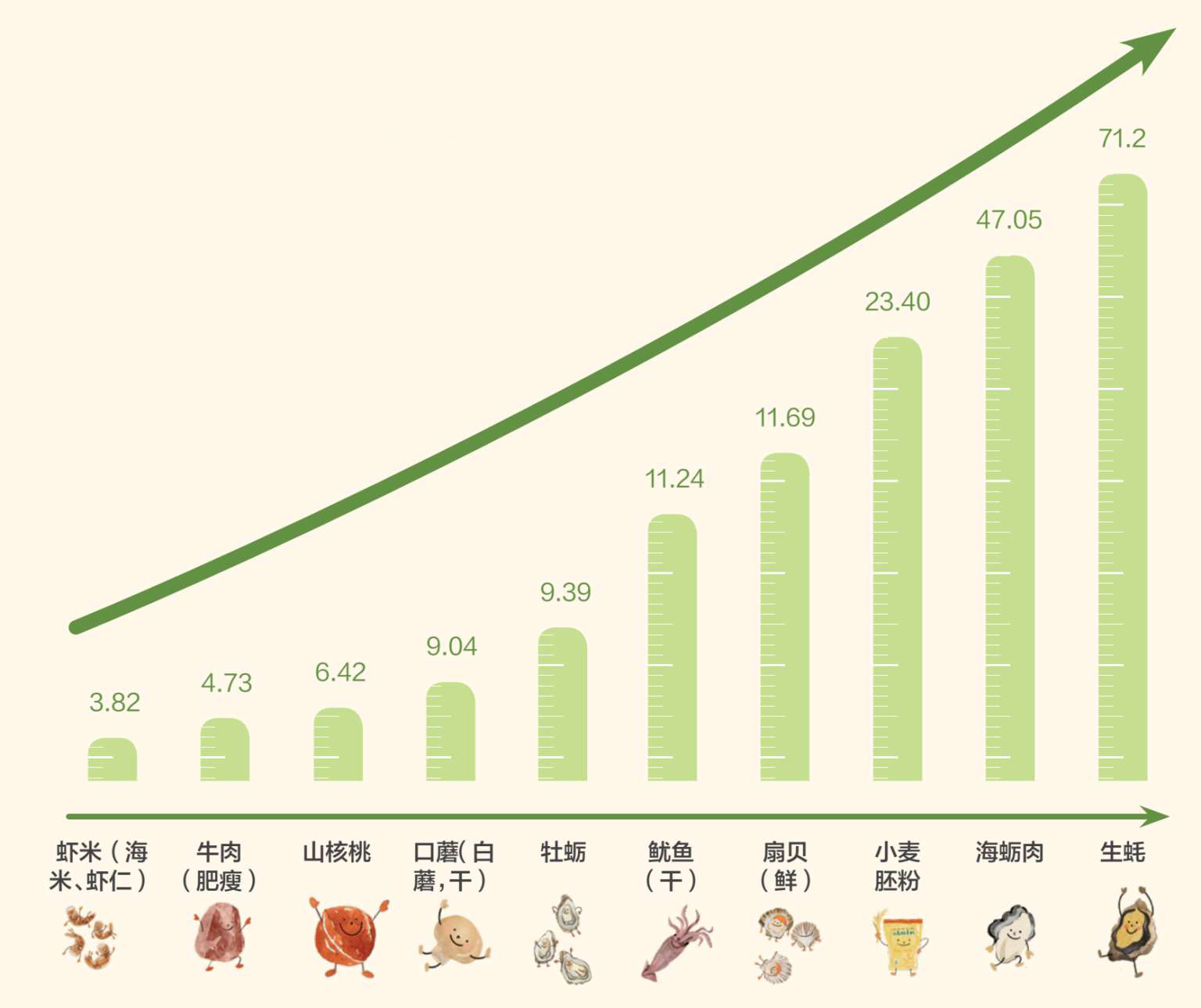 常见补锌食材(每100克食材可食部分锌含量 单位:毫克)