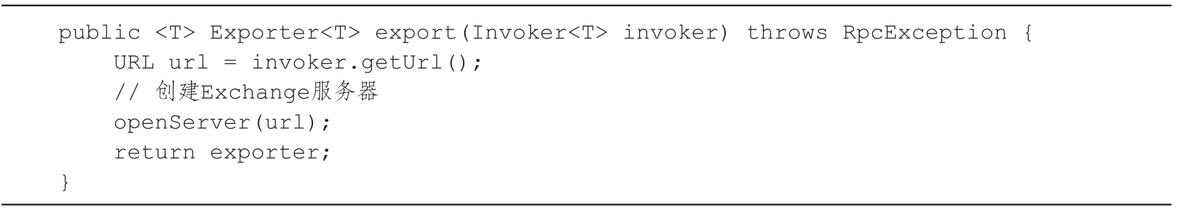 DubboProtocol的export方法如代码清单3-1所示,这里我们省略了服务发布相关内容,而是关注网络通信。