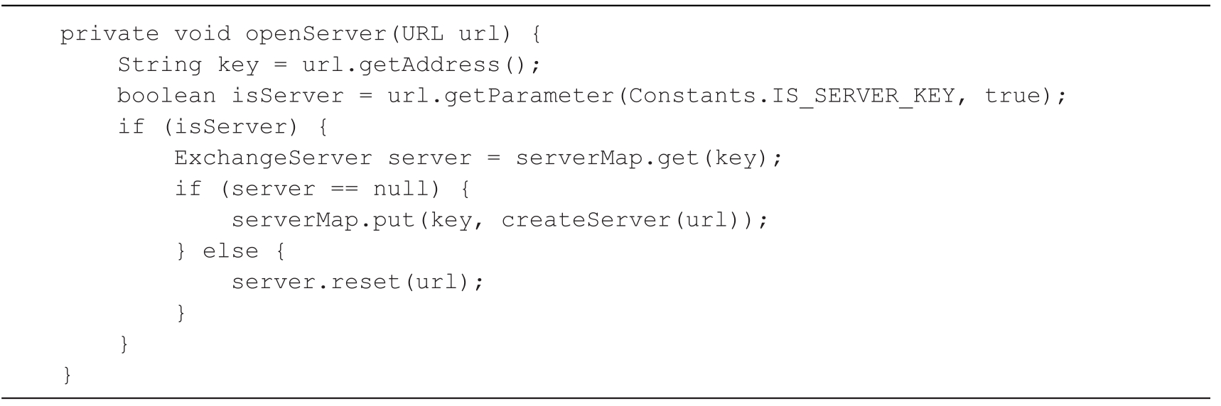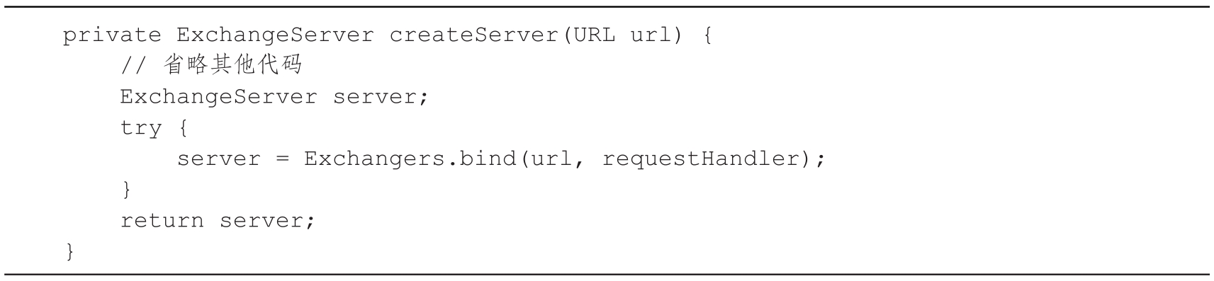 可以看到,在上述代码中我们通过获取URL对象并将其传入openServer方法中以创建Exchange服务器。openServer方法如代码清单3-2所示。
