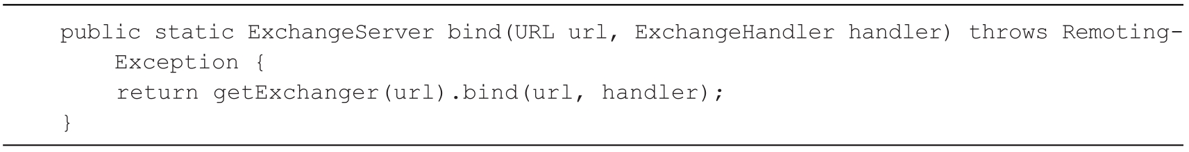 其中,关键代码就是通过Exchangers的bind方法创建ExchangeServer,bind方法如代码清单3-8所示(同样对代码做了简化处理)。