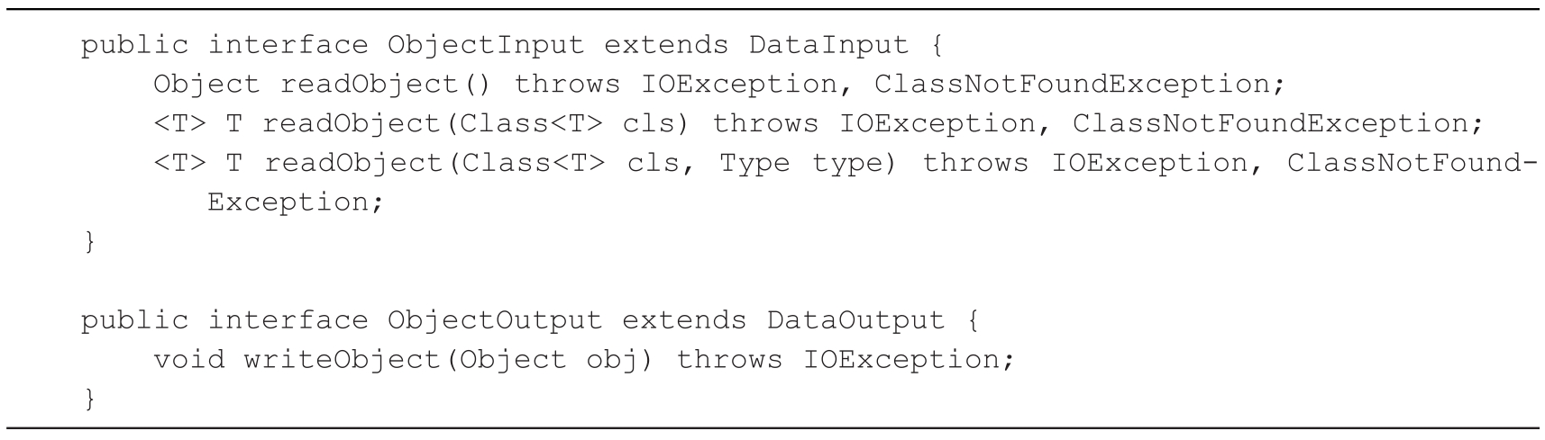 代码清单3-16 ObjectInput和ObjectOutput接口定义代码