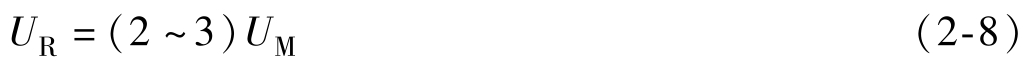 由于晶闸管在工作中可能会遇到一些意想不到的瞬时过电压,因此为了确保管子安全运行,在选用晶闸管时,应该使其额定电压为正常工作电压峰值 U M 的2~3倍,以作为安全裕量。