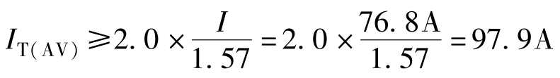 =1.57,(正弦半波平均值与有效值之比为1∶1.57),即额定电流为100A的晶闸管,其允许通过的电流有效值为157A。