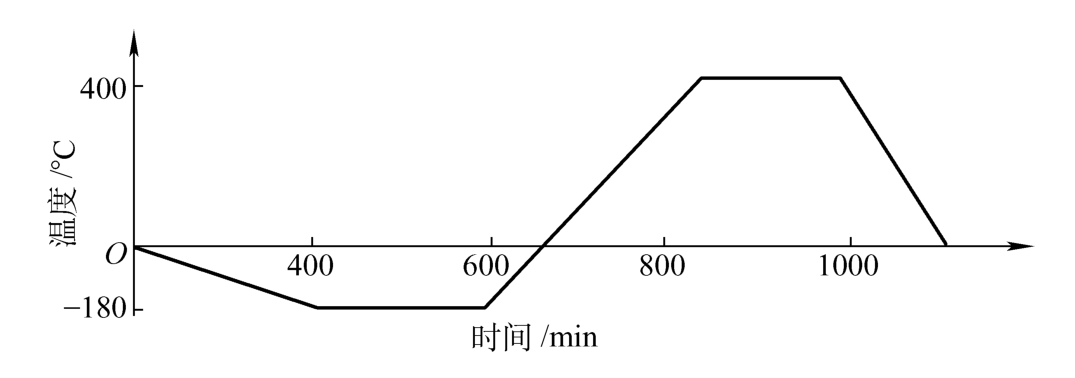 (2)深冷处理工艺 将12mm×12mm×200mm的W12Mo3Cr4V3钢制标准车刀从中间截成两节,形成两组四把车刀,分别标号为1、2、3、4号。其中第2、4号用于深冷处理。深冷处理工艺曲线如图2-3所示。
