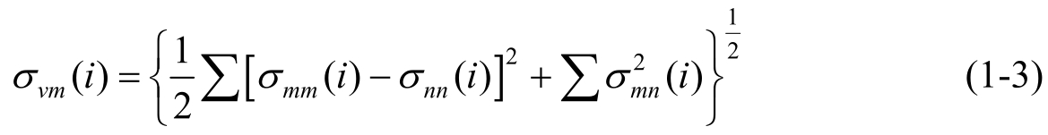 where σ vm ( i ) is the von Mises stress of atom i ; σ mn ( i ) is the atomic stress tensor in the order of m , n ( x , y , or z ).