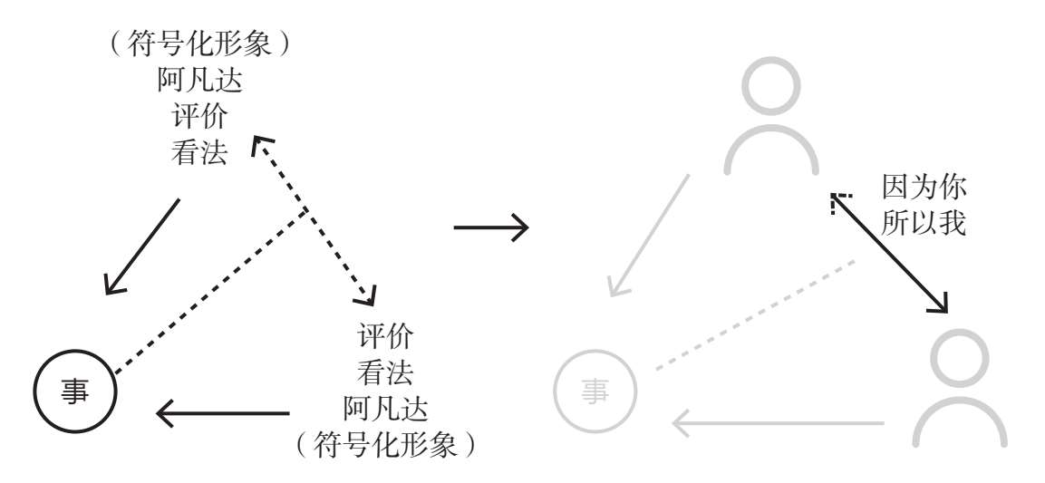 正是这种“你不重要,你的看法却很重要”的自信观,让我们在卑与亢之间来回摇摆。加诸他人的目光终将为自身所承受,“你不重要,你的看法却很重要”,终将变成“我不重要,关于我的看法却很重要”。三角关系中的“你”和“我”被抽空,只剩下了两具由“看法”和“评价”堆砌而成的阿凡达。阿凡达除了有化身的意思,还能被翻译成“符号化形象”,这相当贴切——你和我没有生命,来自外界的符号化看法和评价才是你我的命。