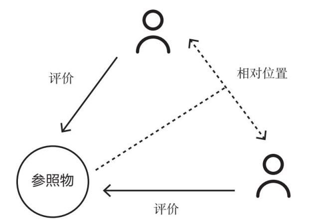 你和我的相对关系,必须经由评价第三方的语言活动来间接 明确。 意思是,当两人在虚空中赤裸相对时,是无法理解彼此的,此时两人之间哪怕出现一块石头,情况都会不一样。我说它来自天上,你说它来自地下;我说它有某种美感,你说那只是一块普通的石头。我和你之间的任何第三方,当它被评价的时候,便是你我关系被建构的时候。如今这块石头是衣服、包包、某个同事还是某类社会事件,没有本质区别。