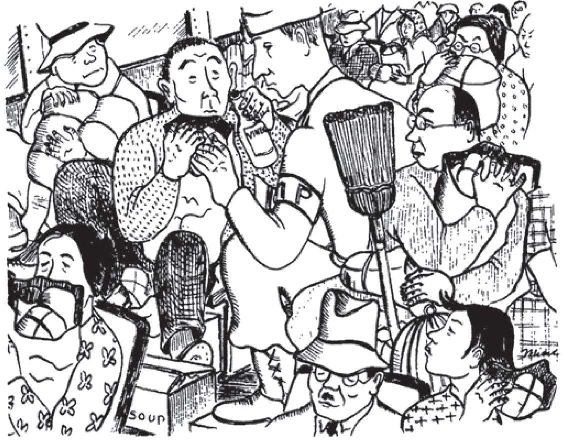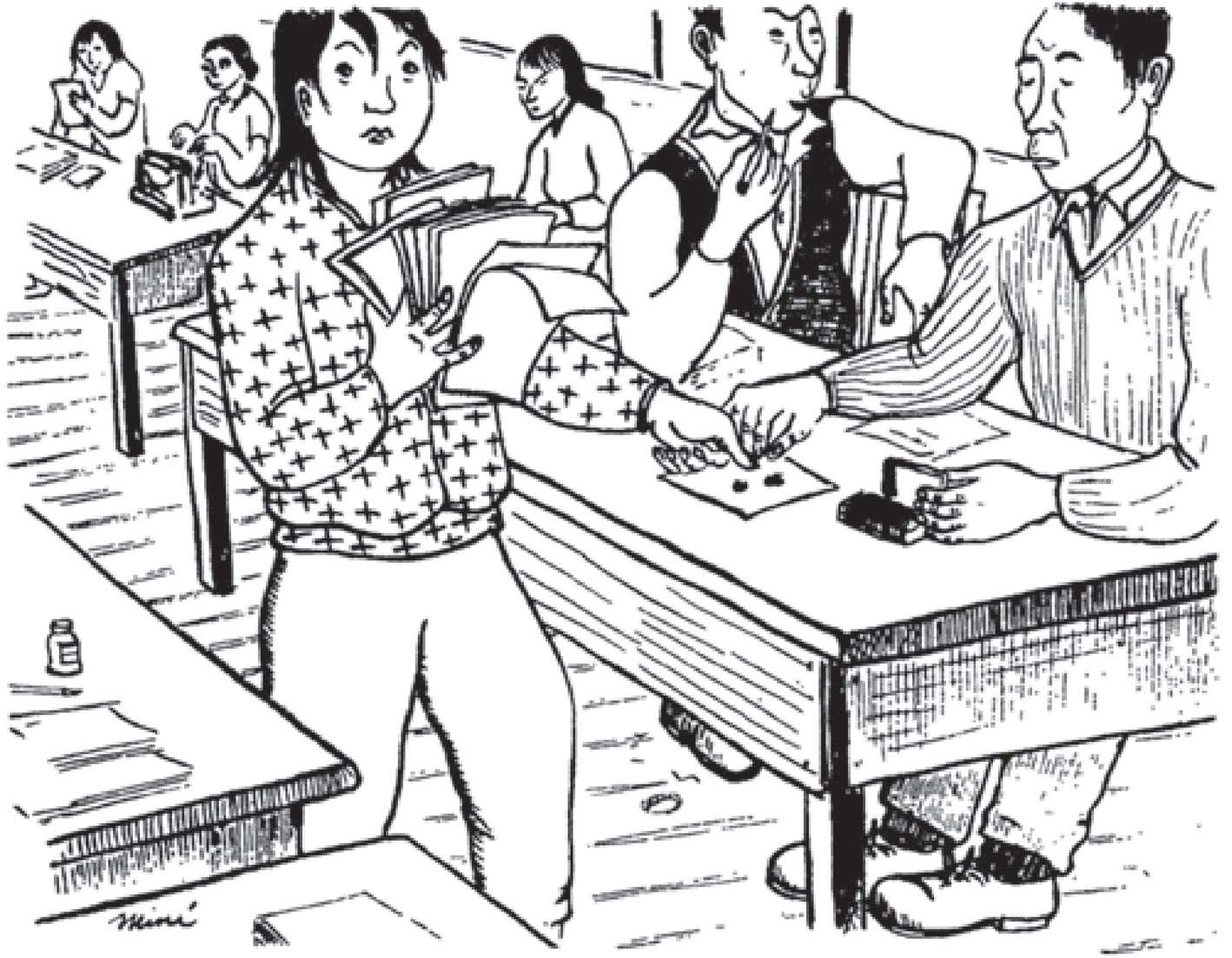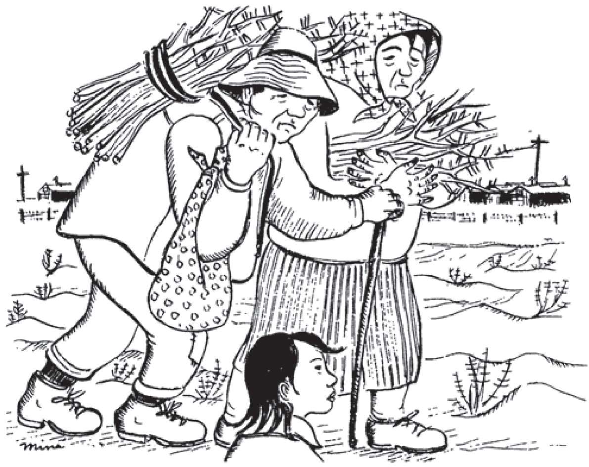 I dashed to the mess hall for a bite to eat, then to the Administration Office, picked up my pass and ration book at the Internal Security Office, and hurried to the gate. There I shook hands with the friends who had gathered to see me off. I lined up to be checked by the WRA and the army.