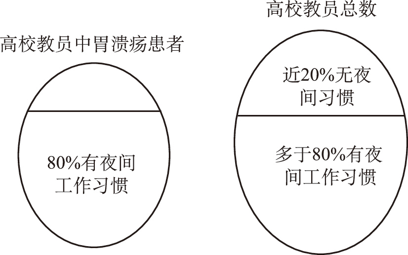 4 一项对某高校教员的健康普查表明,80%的胃溃疡患者都有夜间工作的习惯。因此,夜间工作易造成的自主神经功能紊乱是诱发胃溃疡的重要原因。