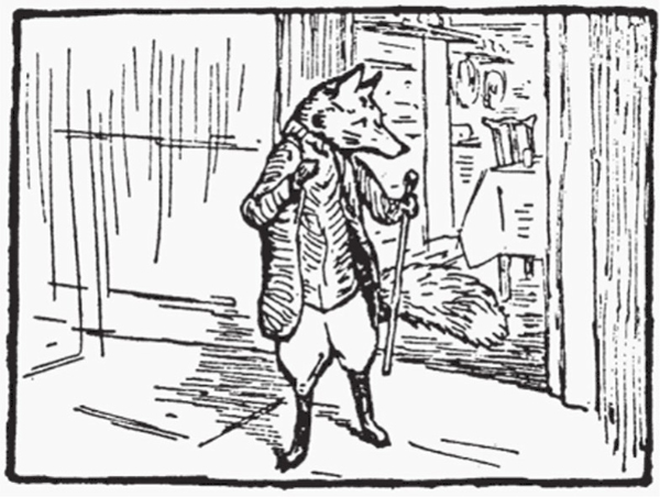For the next twenty minutes Mr. Tod kept creeping [82] cautiously into the house, and retreating hurriedly [83] out again. By degrees he ventured [84] further in — right into the bedroom. When he was outside the house, he scratched [85] up the earth with fury. But when he was inside — he did not like the look of Tommy Brock's teeth.