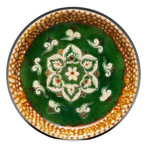 佛家称庄严的佛像为宝相。中国的宝相纹是典型的中外文化交融和创新的产物。例如,南北朝时期的宝相纹受印度莲花纹的影响极深,从形态上看是以顶部俯视的盛开状莲花为主体,同时融合了大自然中多种花卉的造型特征。初唐至开元中期,大唐盛世气象初现,莲花纹也吸收了西域传来的忍冬纹、牡丹纹、石榴纹等造型的特征,无论是内容的丰富程度还是形式的精美程度,都大大超越以前。盛唐时期,雍容华贵的牡丹成了“国花”,那个时期的宝相纹多以牡丹为主角,花瓣圆润,纹样整体造型细腻,似乎也不再严格遵循中心对称的原则。宝相纹似花非花,成为独具特色的中华民族传统纹样,对后代的装饰性纹样影响深远。