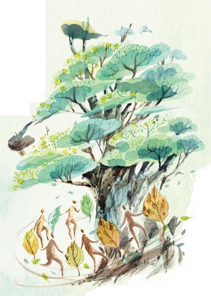 顶天立地,是它们最精神的姿态;根深叶茂,是它们最富有的样子。树比我们人类早到地球3亿多年,占据了约1/3的陆地面积。世界上已知最高的树有100多米,最长寿的树已近5000岁。它们是我们的食物、医药、工具,影响着我们的水、空气、呼吸。有了它们,陆地上所有的生命才有了家,它们的思考是地球生生不息的源动力。所以,不管你想不想成为树,树都已经慢慢地成就了我们。