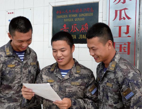 守礁战士阅读师生的来信