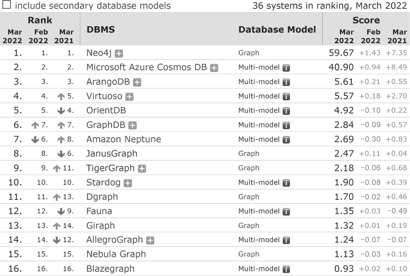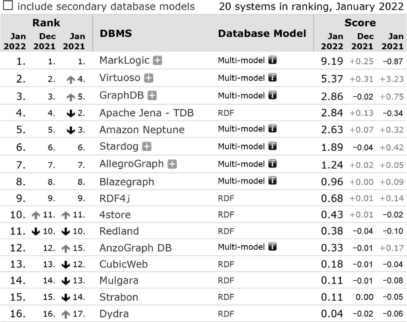 图1-7 DB-Engines上排名靠前的三元组数据库