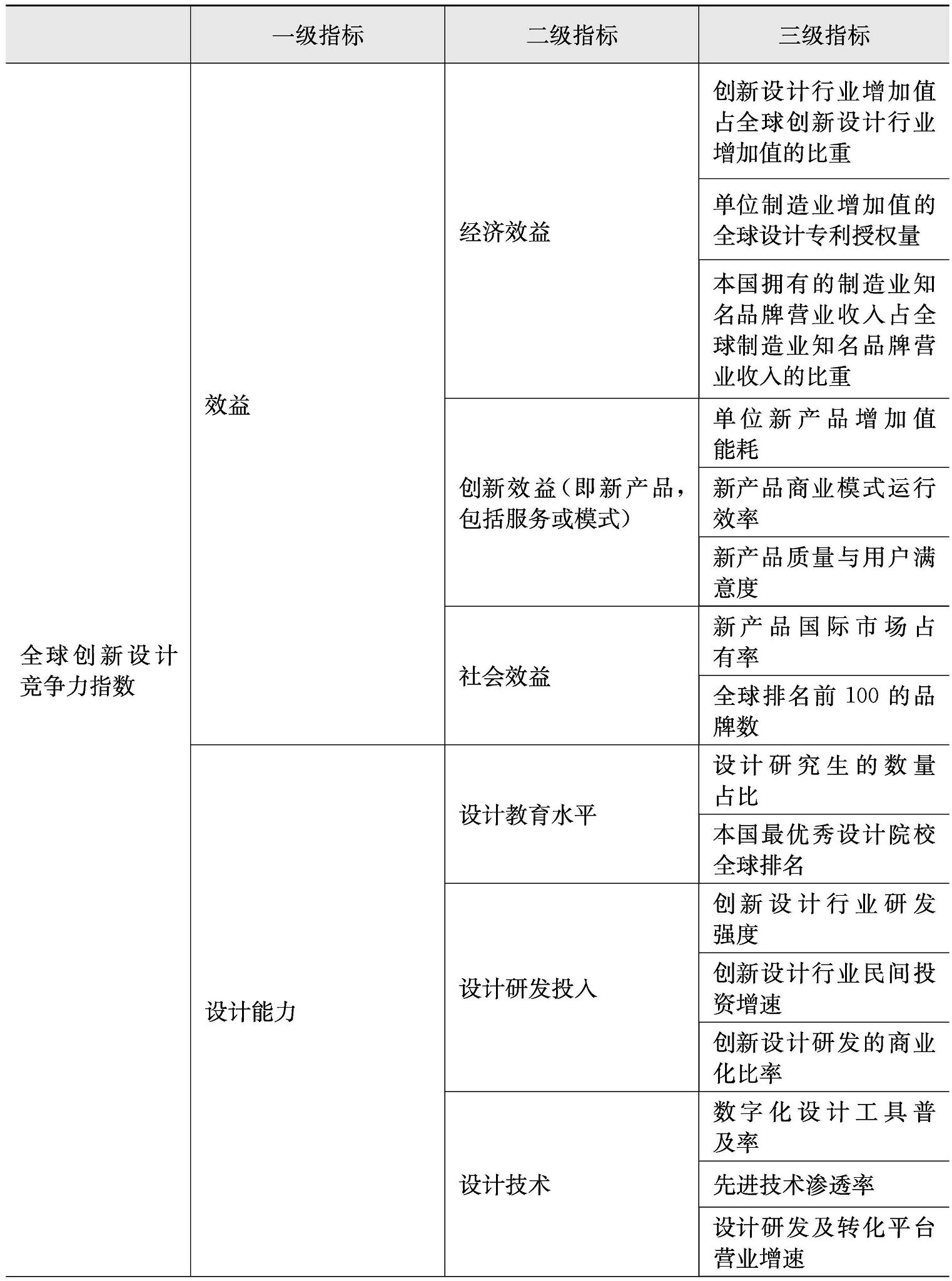 在这些针对设计的指数评价中,同济大学的《全球创新设计竞争力报告2019》和浙江大学的城市设计竞争力报告均从竞争力研究出发。前者基于钻石模型提出了科技水平、设计教育水平、消费者对设计的需求、知识产权产业、产品和服务的丰富性、同业竞争的有序性六大维度和相对应的8个指标,比较了G20的20个国家;后者提取了设计可持续竞争力指数、设计环境指数2个一级指标,经济效益、设计驱动力、人才、资金、互联网信息程度、资源、政策支持、城市设计自生成环境、设计氛围9个二级指标以及更细分的24个三级指标,对杭州、宁波、西安、青岛4个城市进行区域设计竞争力计算。
