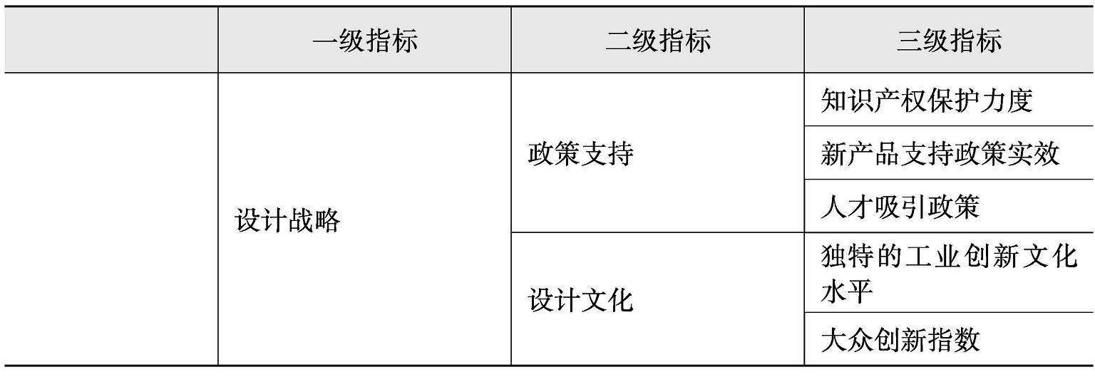 为了对现有设计系统进行研究,首先需要了解现有的宏观设计管理研究内容。柳冠中认为,我国现阶段,企业外部的“工业化的机制”与工业化经济发达国家的相比仍显得十分不健全,行业标准有待完善,产业链不完整,产业结构不成熟,区域的“产业配套服务平台”,乃至政策、知识产权、法规等都有待完善 [10] 。国内学者显然已经认识到这一点,并针对工业设计产业化进程中的策略、路径与机制进行研究,如王国华等对艺术设计创意产业的内涵、产业化路径、组织实施、经营战略等进行研究 [42] ,梁昊光对设计服务业的特征、分类以及工业化、城市化、全球化背景下的设计产业发展趋势进行了研究 [43] 。但涉及产业管理方面的内容,目前针对城市的较多。如王汉友、陈圻对城市整合工业设计产业的集聚趋势进行了数据分析 [44] ,浙江大学孙守迁教授课题组对城市设计竞争力进行了长期的分析,形成了一套基于创新指数理论的设计竞争力评价体系 [45] 。清华大学农丽媚从国家竞争力的角度对设计政策研究进行了梳理,是国内较少从国家角度进行设计产业政策研究的 [46] 。