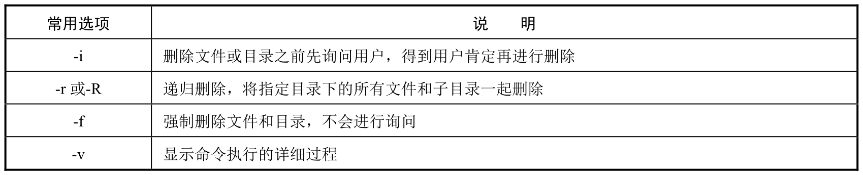 表5-34 rm命令的常用选项