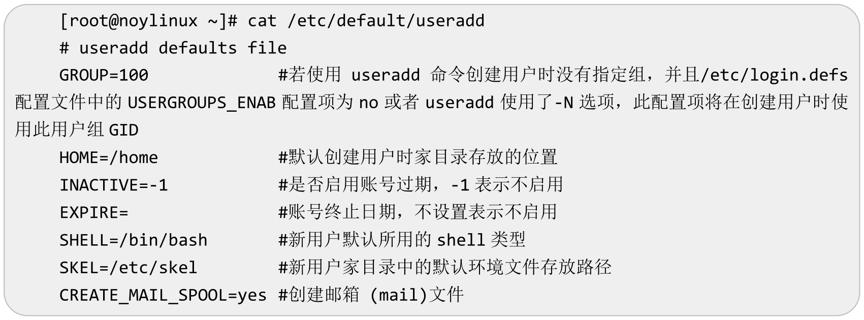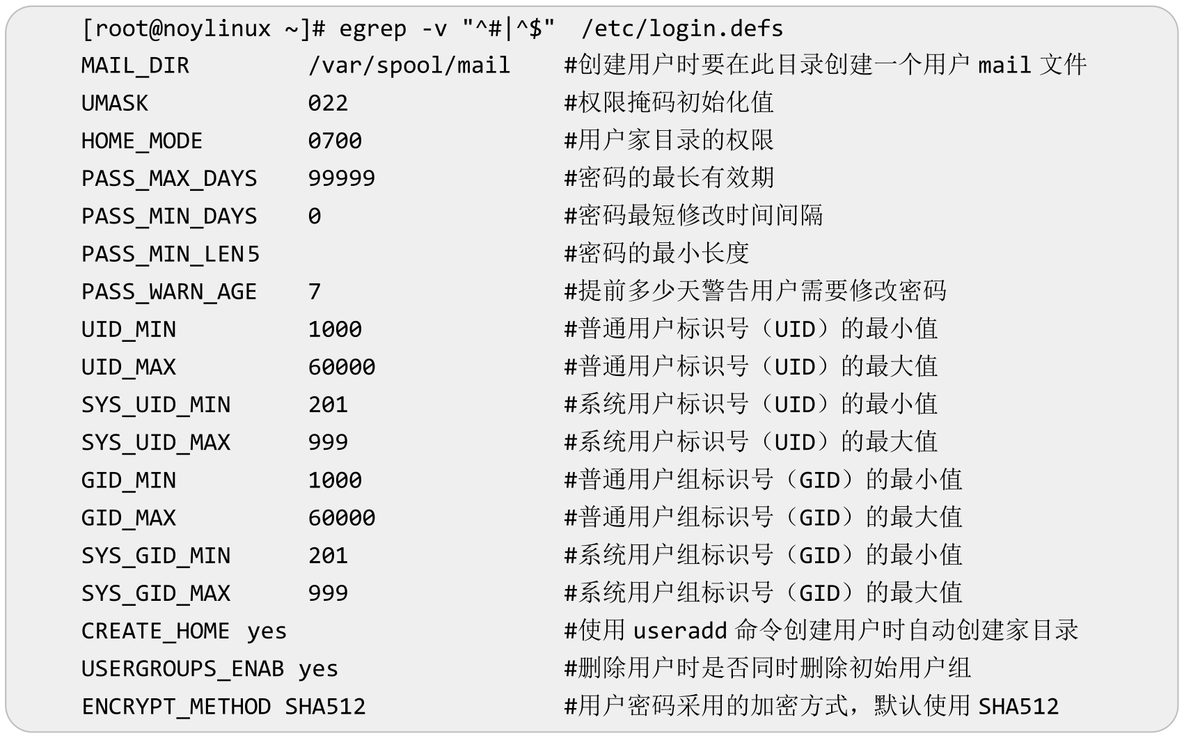 (1)操作系统读取“/etc/login.defs”和“/etc/default/useradd”这两个配置文件,看这两个文件的内容就明白,存放的都是创建用户时默认的配置参数。