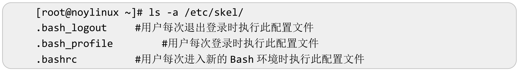 (4)复制“/etc/skel”目录中的所有文件到此用户的家目录中,此目录下的文件是隐藏文件,所以得使用ls-a命令查看。