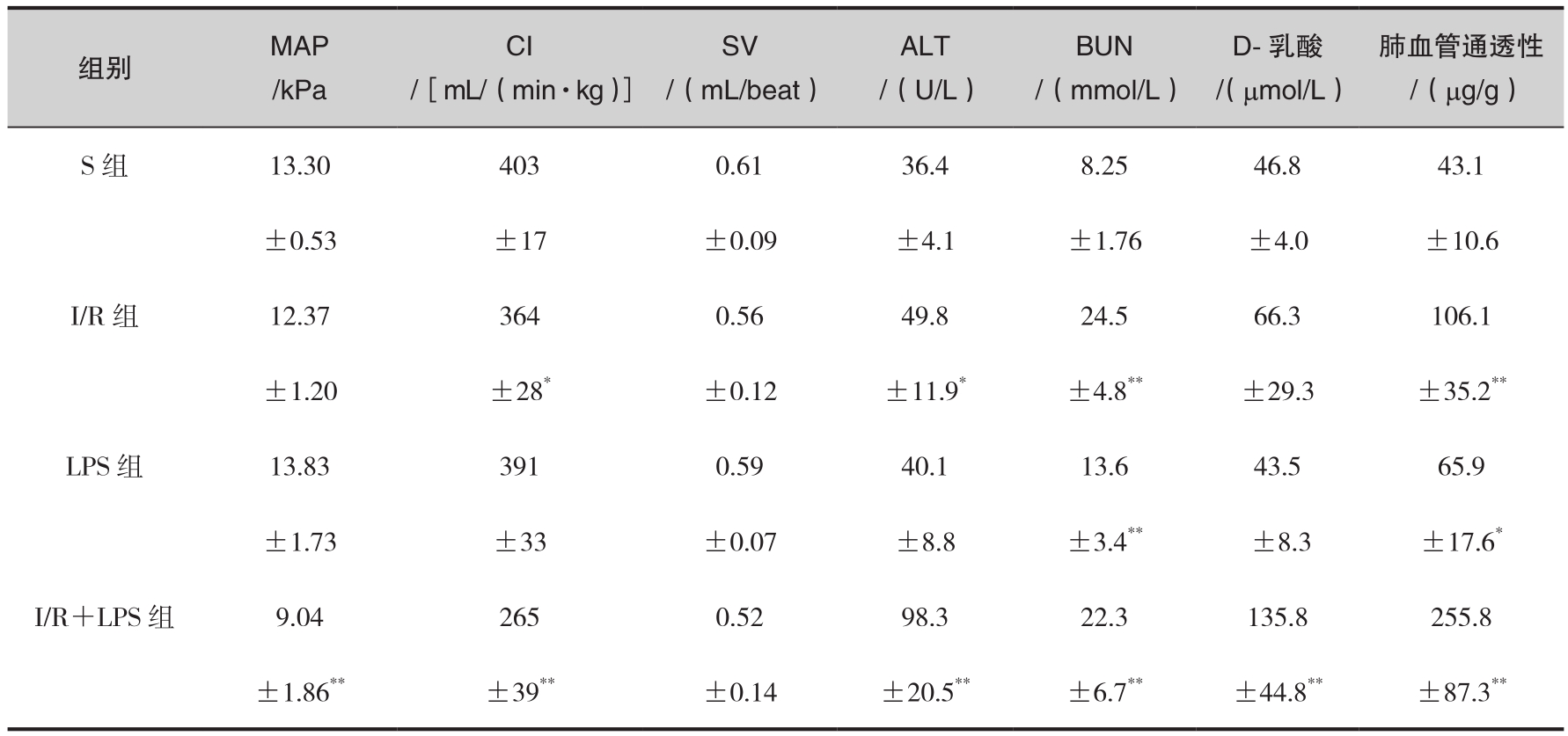 表6-3 大鼠肠缺血-再灌注后内毒素对器官功能指标的影响