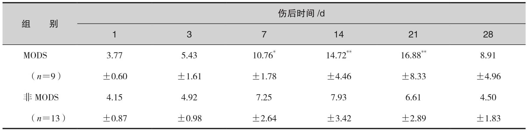注:与非MODS组同一时间点比较, * p <0.05, ** p <0.01。