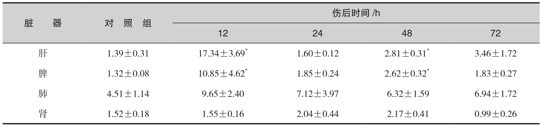 表6-2 烫伤大鼠组织内毒素含量的动态变化