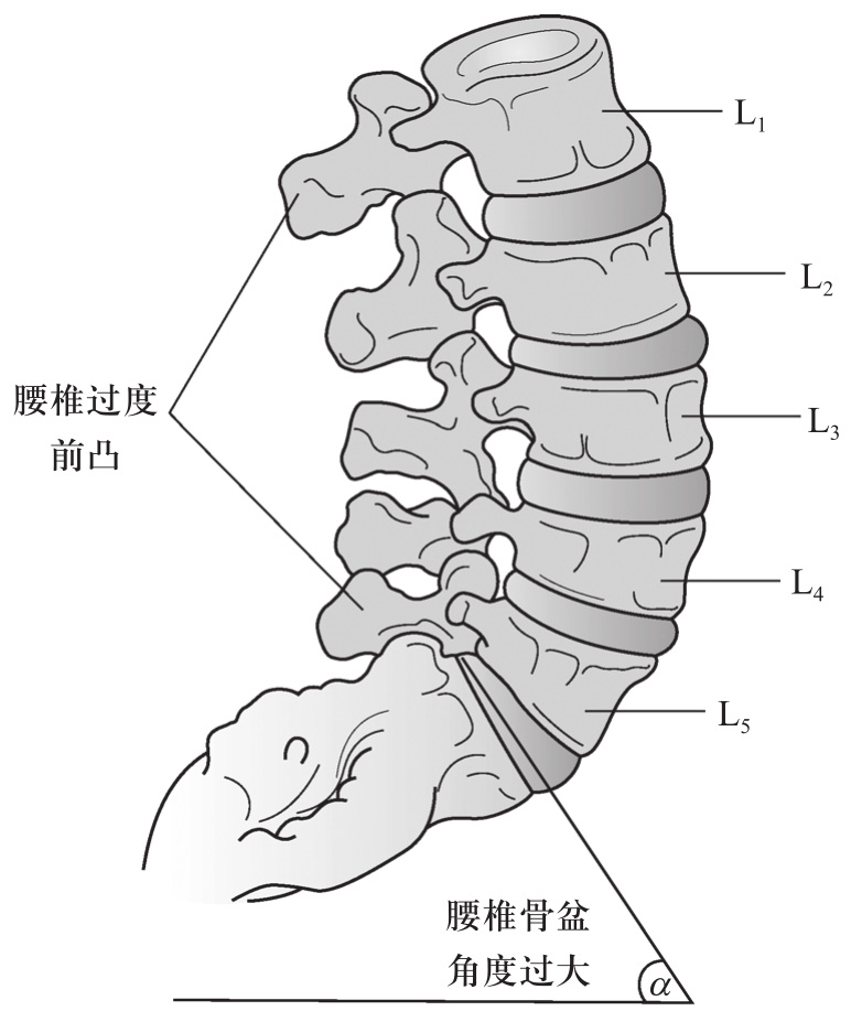 · 腰椎骨盆角度过大——女性超过60°,男性超过55°(第2章的图2.19有针对骨盆角度的解释)。