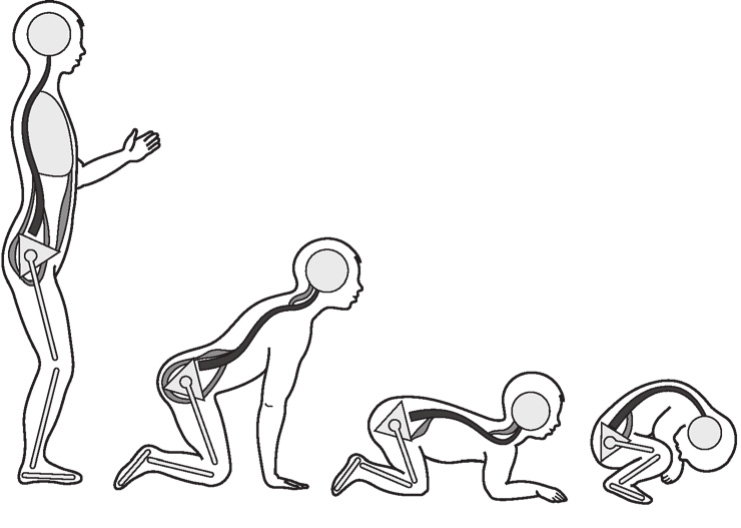 在支撑基础上平衡重心——后突的背部结构能够包裹胸廓里的器官,使重心在骨盆与双脚构成的支撑基础上(Gould & Davies,1985)。这个结构可以在不扭伤背部肌肉的情况下,让身体仍然维持最佳的姿势(图3.3)。