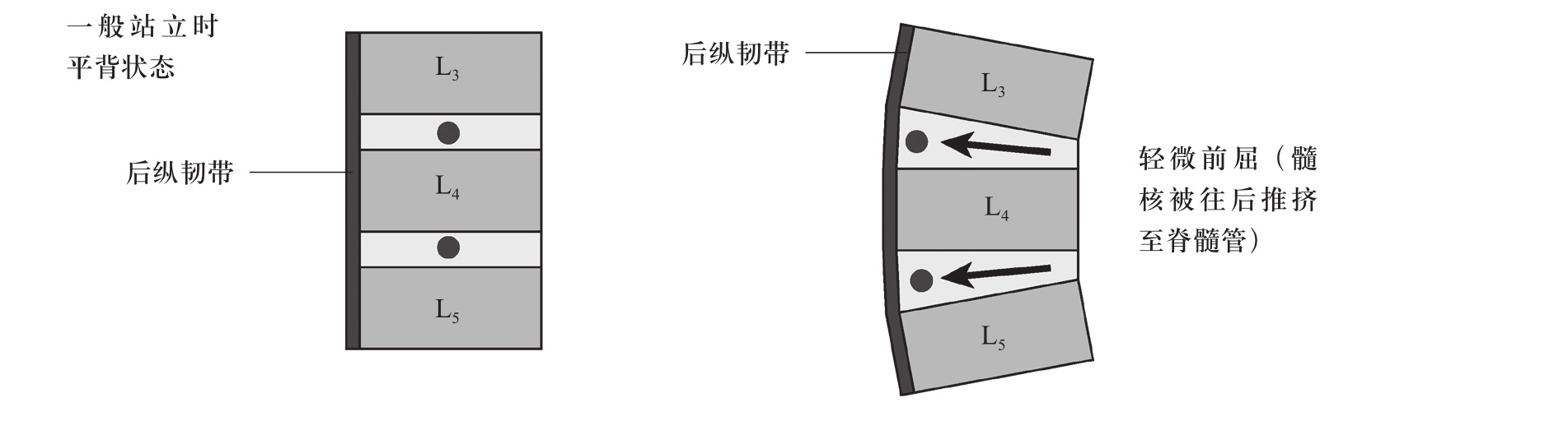 图3.10 腰椎的椎间盘状态与腰椎前凸的“安全机制”