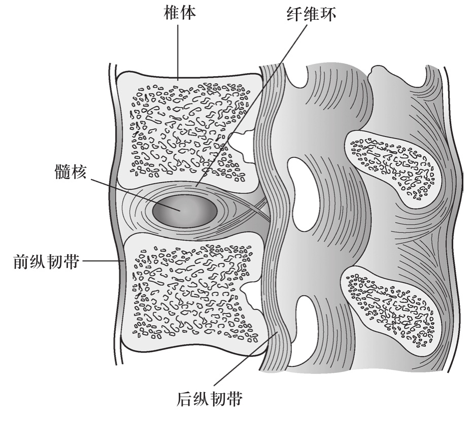 在没有压力与重量的正常情况下,包裹凝胶状髓核的环状纤维环,有足够的坚韧度来支撑髓核,并使髓核保持在上下椎体的中间位置。然而,脊柱承受负荷的时间过长时,可能会使椎间盘损伤(Nachemson,1983),常见的两种损伤如下: