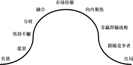 文明的生命周期与另一个生命周期——产品创新的生命周期非常相似。当今影响工业组织兴衰的动态因素与决定文明兴衰的动态因素也十分相似。开发创新产品的生命周期如图2-3 所示。