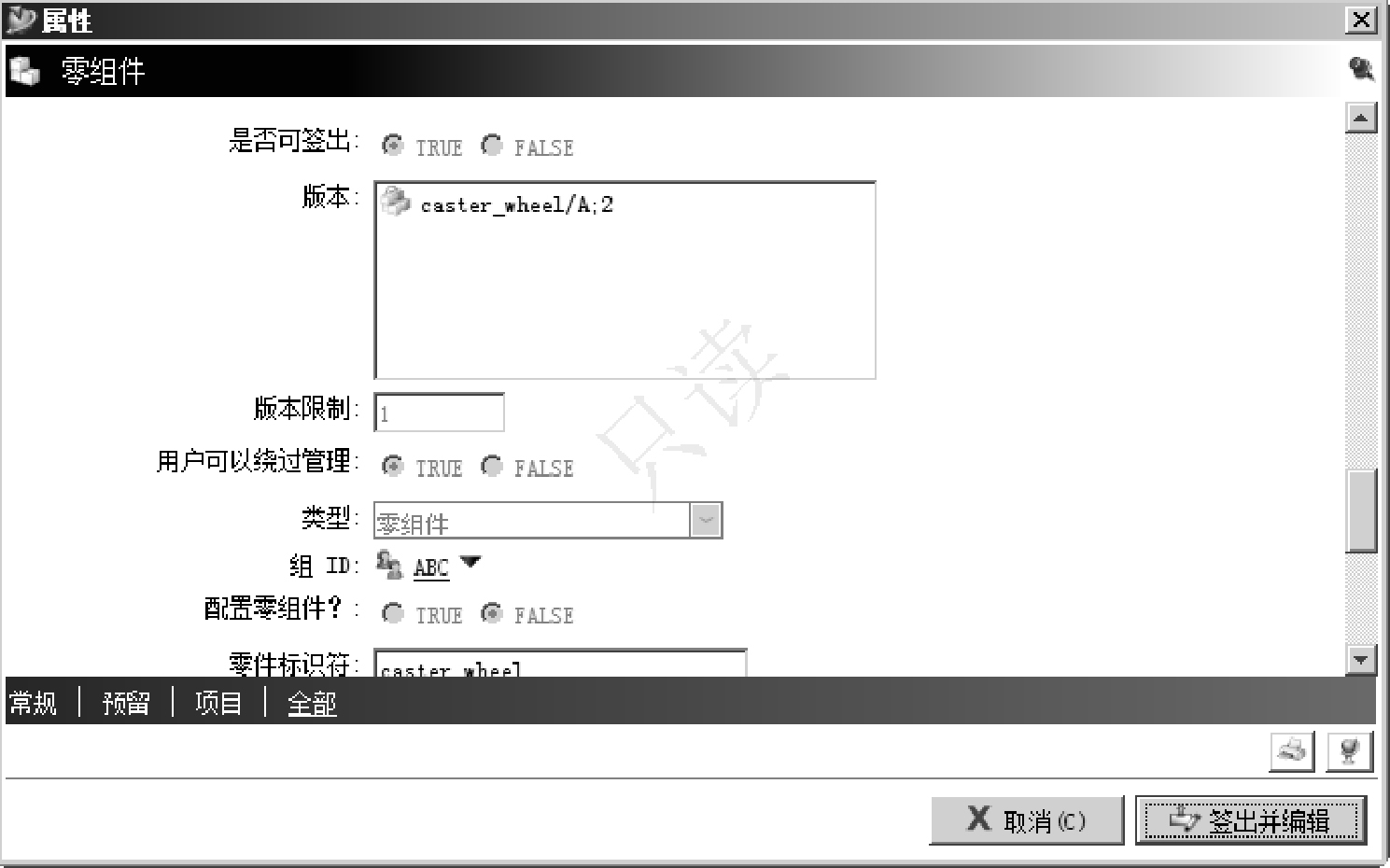 实例2-3 Item(caster_wheel)的签入(Check-in)/签出(Check-out)操作