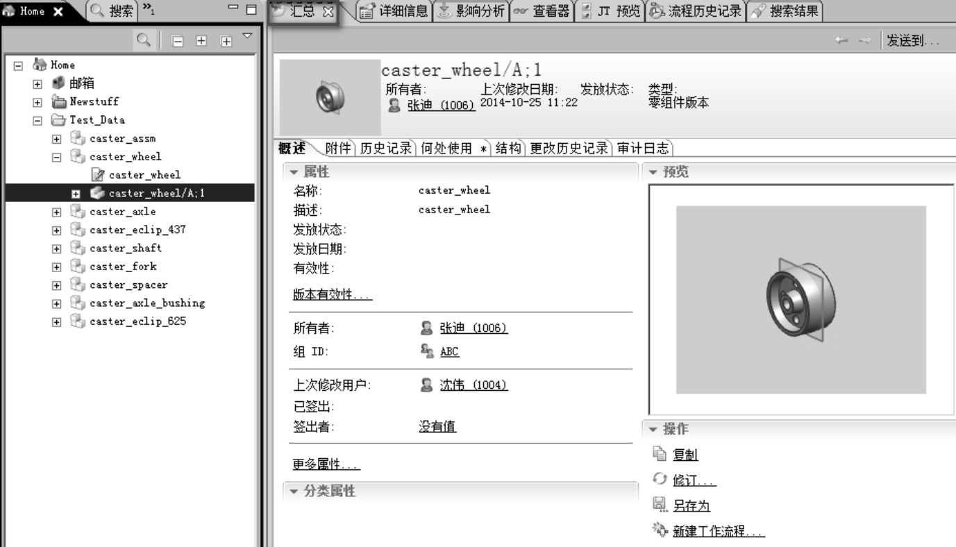 Item在系统中创建之后,将随着研发、设计和工程的进展而不断改变其形态。设计人员可以通过对Item关联的数据、文件、属性表等内容进行修改而对Item的定义做出改变,这是一个随时间而变的数据历程。