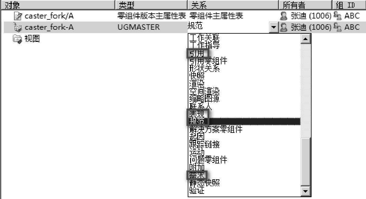符号的对象,表示该Item/Item Revision下相关对象已签出,如图2-26所示。