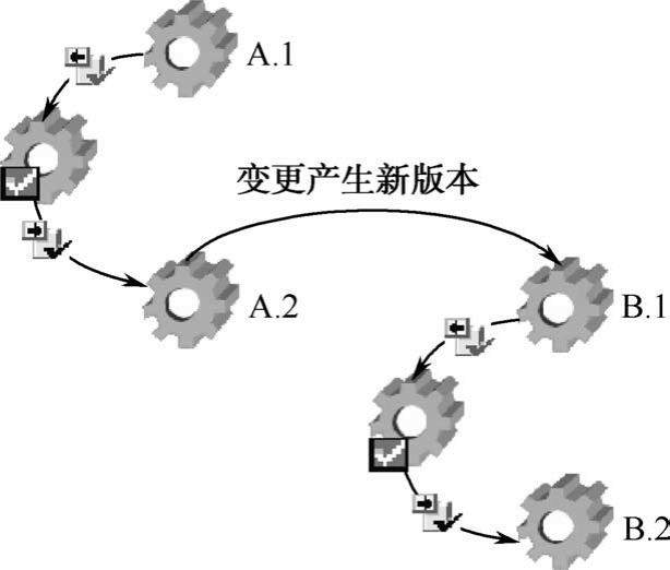每个零组件(Item)都有至少一个版本(Item Revision)。在Teamcenter中,系统利用版本来记录零组件的历史演变(更改情况),并通过版本的追踪来保证用户取用的数据是最新有效的。每当产品归档,即生成一个新版本。数据归档后,不能随意对已归档的数据进行修改;如果需要修改,必须通过变更过程记录修改原因和改前改后关系(详细阐述见第4章的工程更改管理),同时通过版本的升迁记录数据的变更。换句话说,新版本的产生一定伴随有工程更改的发生。