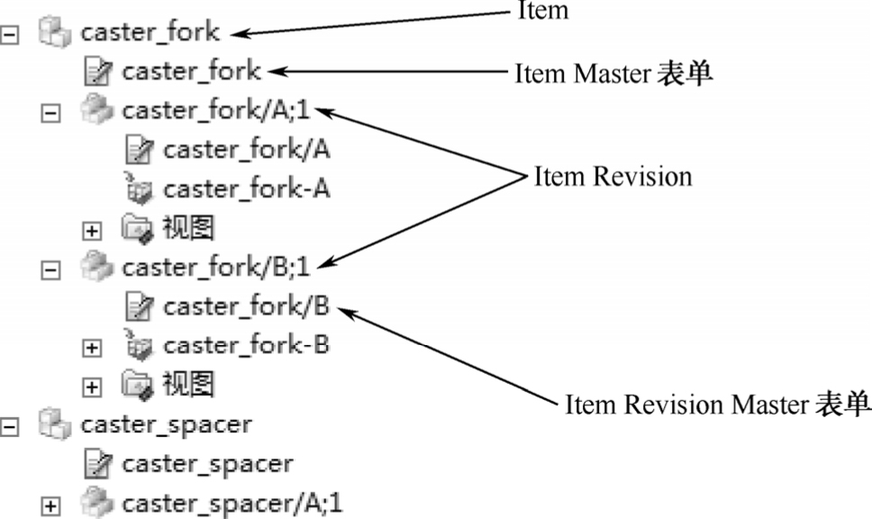 表2-2 Item/Revision与产品数据的关系图