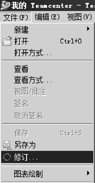 如图2-12所示表示了版本和版次的关系。在Teamcenter系统中,保证Item与ItemRevision关联在一起,但两者的特性可以不同,如Owner可以不同。Teamcenter系统中版本修订的方法是选中要修订版本的Item Revision,然后在菜单栏中单击“文件”→“修订…”,如图2-13所示。