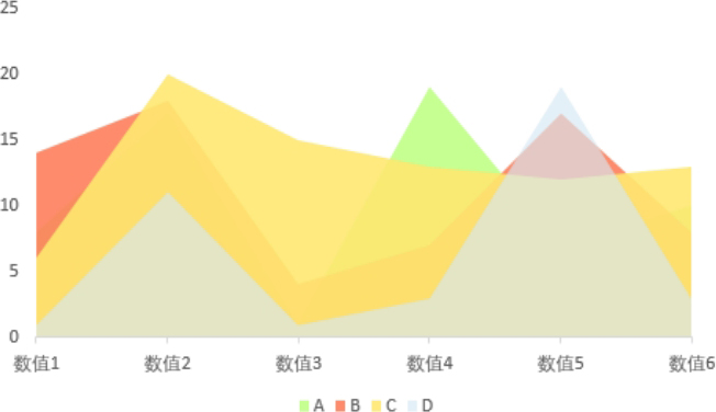 面积图又称折线图,以曲线的上升或下降来表示统计数量的增减变化情况。面积图不仅可以表示数量的多少,还可以反映数据的增减波动状态。面积图是一种用面积展示数值大小的图表,可以用曲线来展示数据变化的趋势。如果说条形图是柱形图的演变图表,那么面积图则是折线图的演变图表,如图2-33所示。