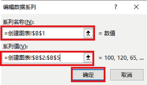 选择“插入”选项卡并单击“插入柱形图或条形图”下拉按钮,选择“簇状柱形图”选项,即可生成一张空白的图表。接下来在空白图表中添加数据。选中前面生成的空白图表并选择“图表设计”选项卡,单击“选择数据”按钮,在弹出的“编辑数据系列”对话框中单击“添加”按钮。接着在弹出的“编辑数据系列”对话框中单击“系列名称”文本框将其激活,选中“B1”单元格。单击“系列值”文本框将其激活,清除文本框中默认的1,继续选中“B2:B5”单元格区域,单击“确定”按钮,如图2-2所示。