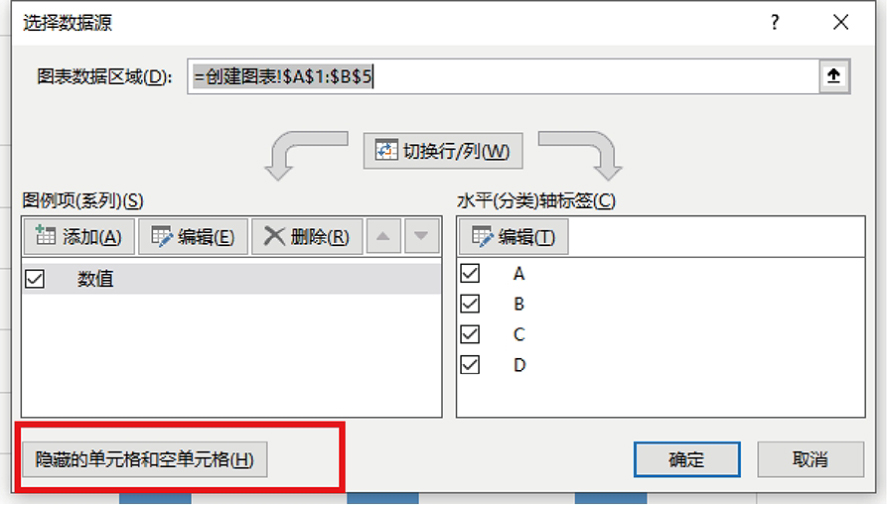 通过对图表的数据属性进行设置,将“A∶B”两列数据隐藏了起来,但图表数据依然可以显示出来。
