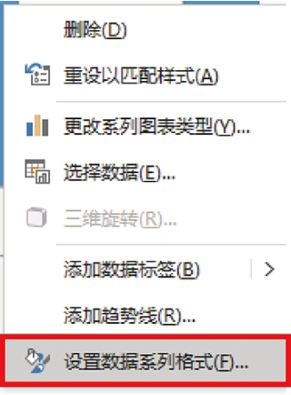 我们可以选中一个目标图表后右击鼠标,在弹出的快捷菜单中选择“设置数据系列格式”命令,如图2-9所示。此时在右侧即可打开图表的“数据系列格式”工具箱,我们可以看到不同的图表在工具箱中显示的设置按钮是不一样的。接下来进一步对3种基础图表的基本设置分别进行详细介绍。