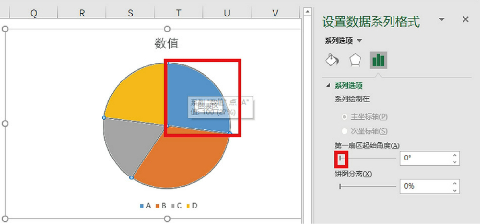 关于饼图的基本设置,这里从第一扇区起始角度和饼图分离两个方面进行了介绍,并且可以单独对饼图的一个扇区进行设置。对于饼图的分离程度,还有许多演变效果,在后面会逐一讲解。