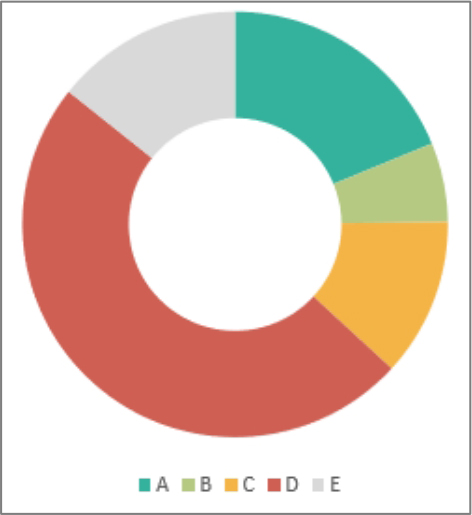环形图又称圆环图,与饼图一样,常用于展现数据的组成和占比情况。相比饼图,环形图的可读性更高,可以将重要数据放在圆环中间显示,如图2-36所示。