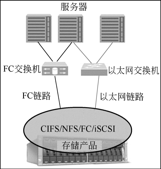 整个存储系统的主要数据包括数据库形式的结构化数据、虚拟机数据文件及用户文件等非结构化数据,如用Server-SAN和FC-SAN相结合的方式构建存储池,其中 FC 存储保存在线访问的高级应用数据,Server-SAN存储保存虚拟机文件和普通应用数据等。存储系统逻辑结构如图3-9所示。