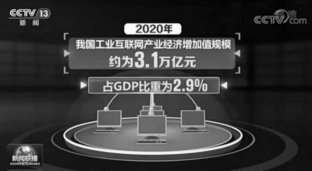 工业互联网是我国国民经济增长的新动能,具有丰富的内涵,重塑了当前的工业生态体系,不断催生新的就业岗位。工业互联网已广泛渗透应用至钢铁、石化、工程机械、电子信息等30多个行业。2021年1月8日,中央电视台《新闻联播》专题要闻节目《工业互联网加速中国新型工业化进程》(见图3-2)强调,5G与工业互联网的融合将加速数字中国智慧社会建设,加速中国新型工业化进程,为中国经济发展注入新动能。
