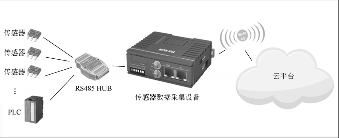 第一层是边缘层:一是通过各类通信手段接入不同设备、系统的数据;二是依托协议转换技术实现多源异构数据的归一化和边缘集成,实现海量工业数据的互联互通和互操作;三是利用边缘计算设备实现底层数据的汇聚处理,并实现数据向云端平台的集成。通过大范围、深层次的数据采集,以及异构数据的协议转换与边缘处理,构建工业互联网平台的数据基础。工业设备接入架构示例如图3-4所示。
