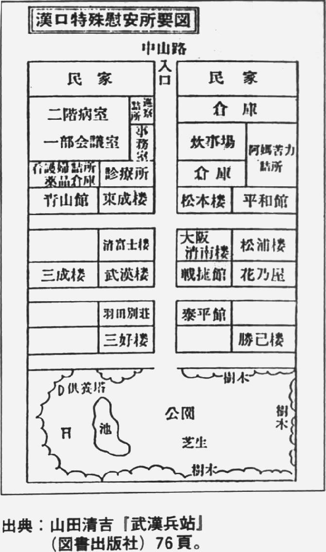 当时的中国报纸刊文指出:“敌军到了武汉,边将‘随营娼妓’集合起来,指定区域居住,名为所谓‘陆军公娼区’‘海军公娼区’,如老联保里、新联保里、生成里,以及特一区已烧去二分之一的六合里,现在都是公娼区。敌军在汉抢掠的我国女同胞,奸淫以后便送到公娼区里去卖笑,在这些淫窝中和那些魔窟中一样,是充满了黑暗、惨痛和残酷的景象。”